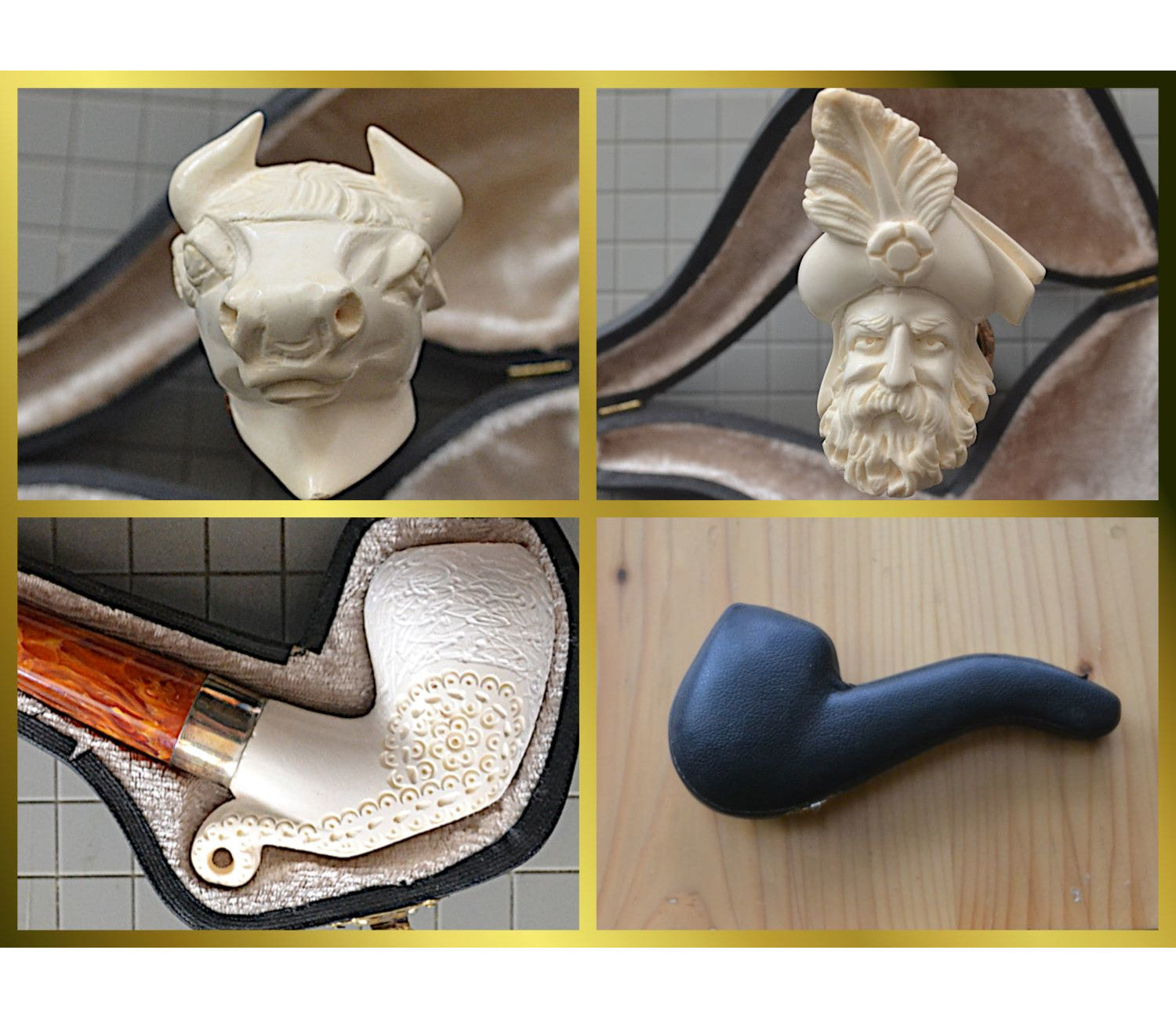 Genuine block Meerschaum smoking pipe kits, smoking pipes, items made out of...
